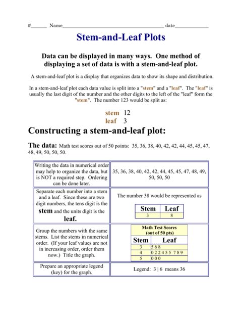 Stem And Leaf Plot Guide Pract