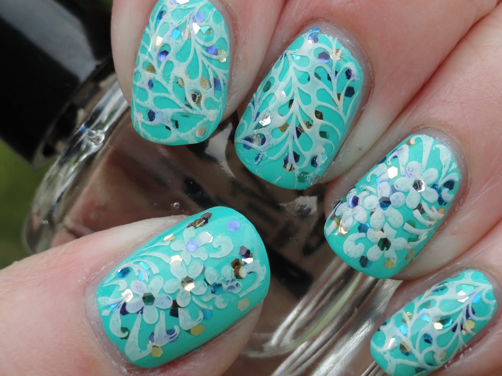 Metallic Aqua Blue Nails With A Healthy Dose Of Glitter Channeling Those Ocean Vibes For Summer Redditlaqueristas
