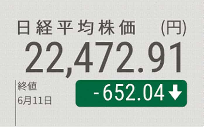 日経平均 終値652円安 利益確定売り強まり大幅反落 日本経済新聞