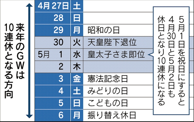 nie 産経 新聞で学ぼう 12 来年のgwは10連休 天皇即位5月1日が 祝日 になれば 産経ニュース